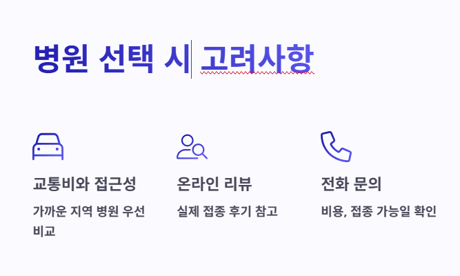 병원 비용 외에도 교통비가 추가될 수 있으니, 가까운 지역의 병원을 우선적으로 비교해 보세요. - 온라인 리뷰 및 후기 확인