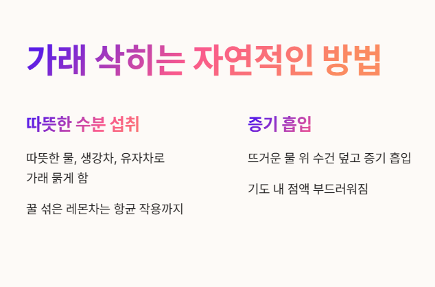 평소 습도 관리, 금연, 따뜻한 수분 섭취 같은 간단한 습관들만으로도 큰 도움을 받을 수 있답니다. 😄