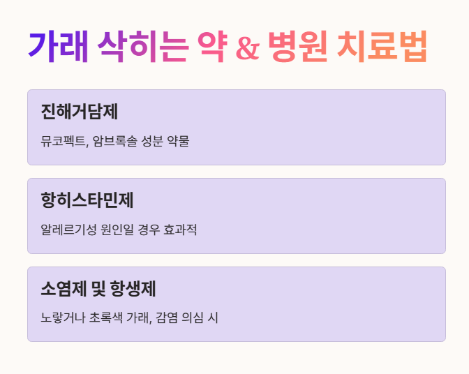 - 항히스타민제: 알레르기성 원인이라면 항히스타민제를 복용할 수 있어요.