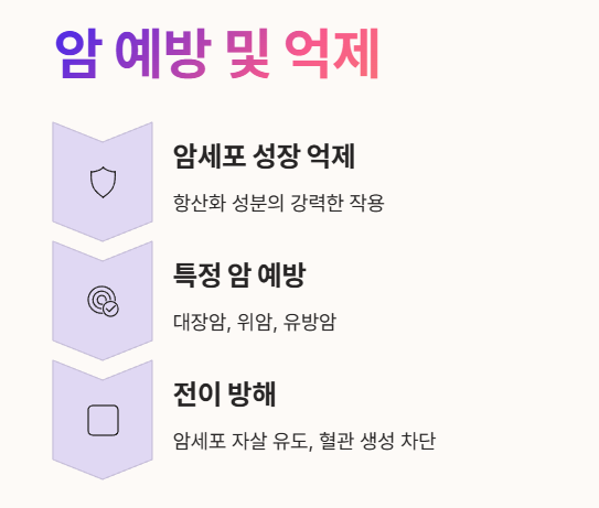 - 암세포의 자살을 유도하고 새로운 혈관 생성을 막아 암의 전이를 방해하는 역할을 해요. 🔬