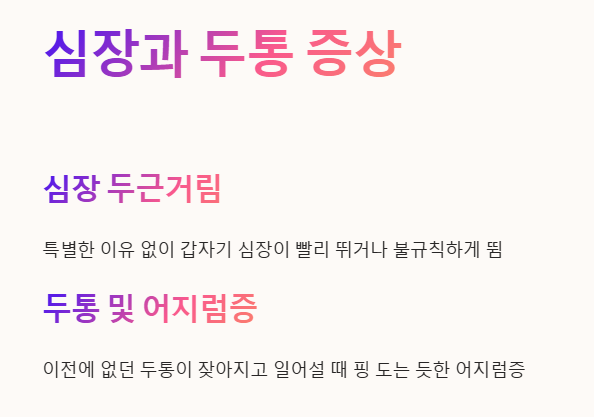 - 이전에는 없던 두통이 잦아지거나, 일어설 때 핑 도는 듯한 어지럼증을 경험할 수 있어요. 😵