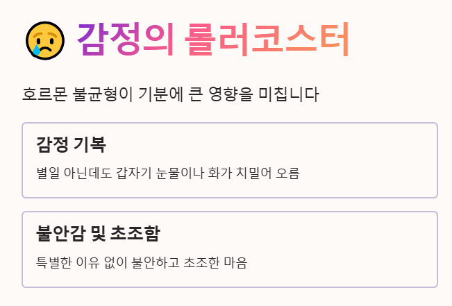 호르몬의 불균형은 우리의 기분에도 큰 영향을 미친답니다.