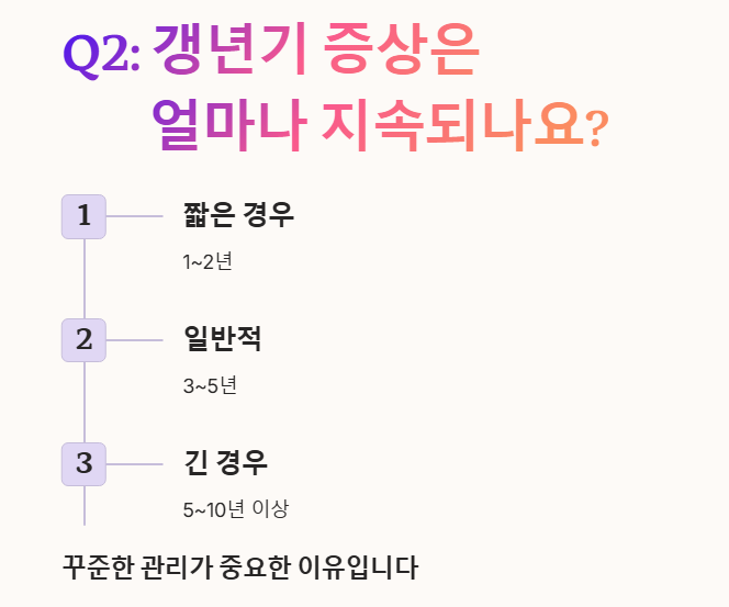 Q2: 갱년기 증상은 얼마나 오래 지속되나요?