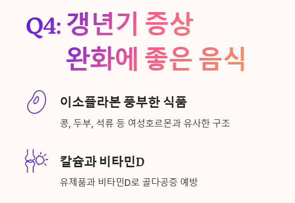 Q4: 갱년기 증상 완화에 좋은 음식이 있나요?