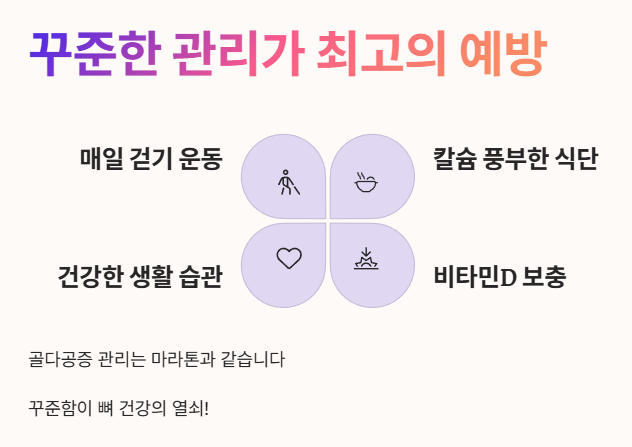 오늘 알려드린 정보를 바탕으로 건강한 생활을 실천하셔서 뼈 건강을 지키시길 바랍니다! ✨