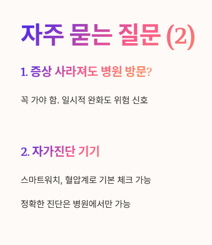오늘 알려드린 전조증상과 자가진단 방법, 꼭 기억해주세요.