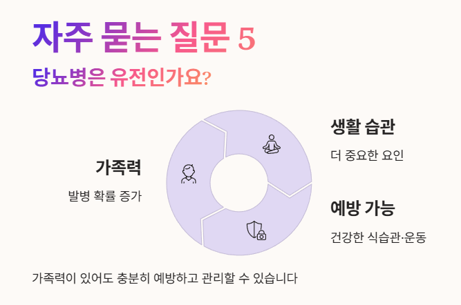 - 가족력이 있더라도 건강한 식습관과 규칙적인 운동을 통해 충분히 예방하고 관리할 수 있습니다.