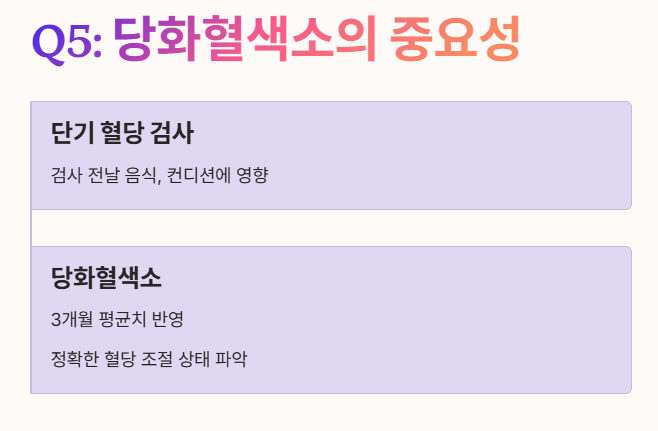 하지만 당화혈색소는 약 3개월간의 평균치를 반영하므로, 현재 나의 전반적인 혈당 조절 상태를 가장 정확하게 파악하고 합병증 위험을 예측하는 데 중요한 지표가 됩니다.