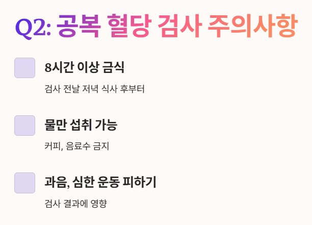 Q2: 공복 혈당 검사 전 주의사항이 있나요?