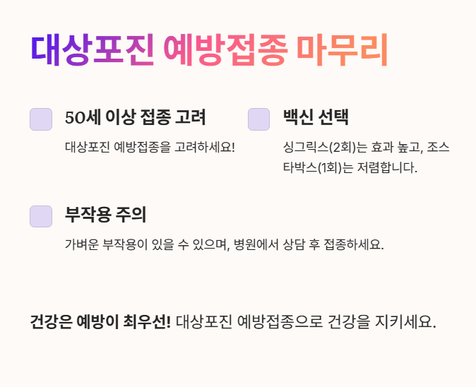- 50세 이상이라면 대상포진 예방접종을 고려하세요!