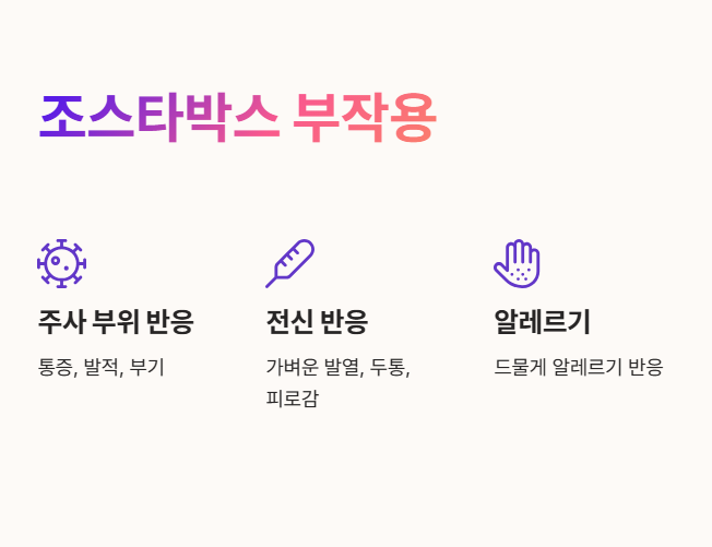 👉 조스타박스(생백신)는 임산부에게 권장되지 않으며, 싱그릭스도 안전성이 확립되지 않아 임신 중 접종은 피하는 것이 좋습니다.