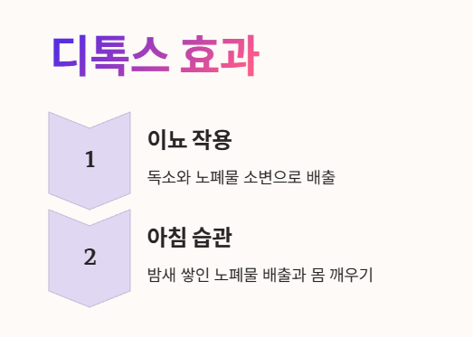 - 위장이 튼튼하다면 아침 공복에 마시는 것이 노폐물 배출과 신진대사 촉진에 도움이 될 수 있어요.