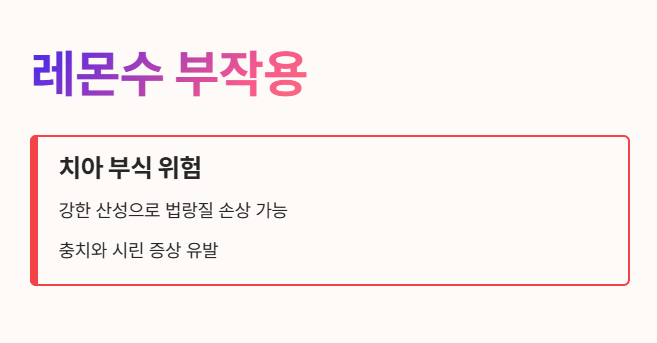 물론 좋은 효능이 많지만, 레몬의 강한 산성 때문에 몇 가지 주의할 점도 있어요.