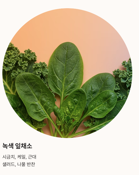 2) 짙은 녹색 잎채소 (시금치, 케일)