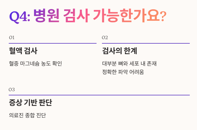 Q4: 마그네슘 부족 현상은 병원에서 검사할 수 있나요?