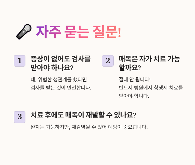 - 파트너도 함께 검사·치료해야 재감염 방지 가능!