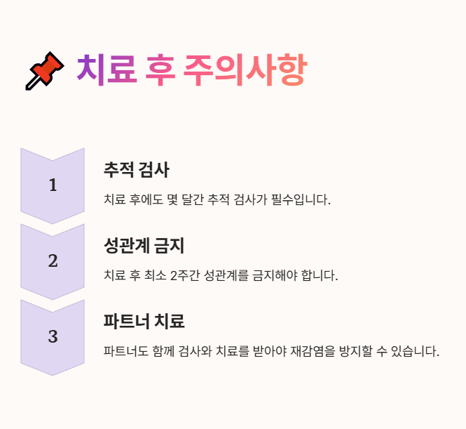 - 파트너도 함께 검사·치료해야 재감염 방지 가능!