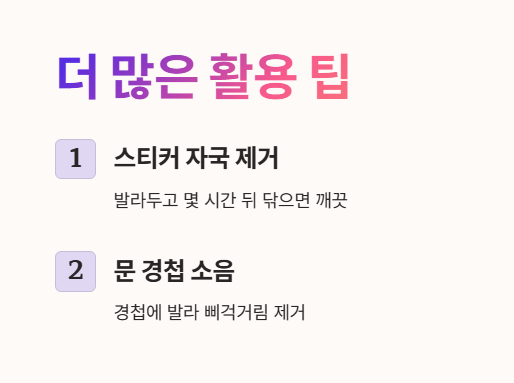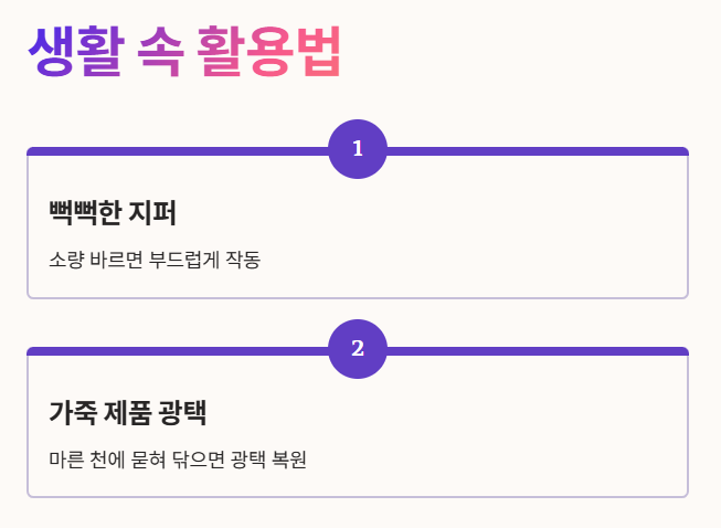 향수 지속력 높이기, 가죽 관리 등 일상 속 꿀팁부터 올바른 사용법까지 모두 알려드립니다. 지금 바로 확인하세요! 😄