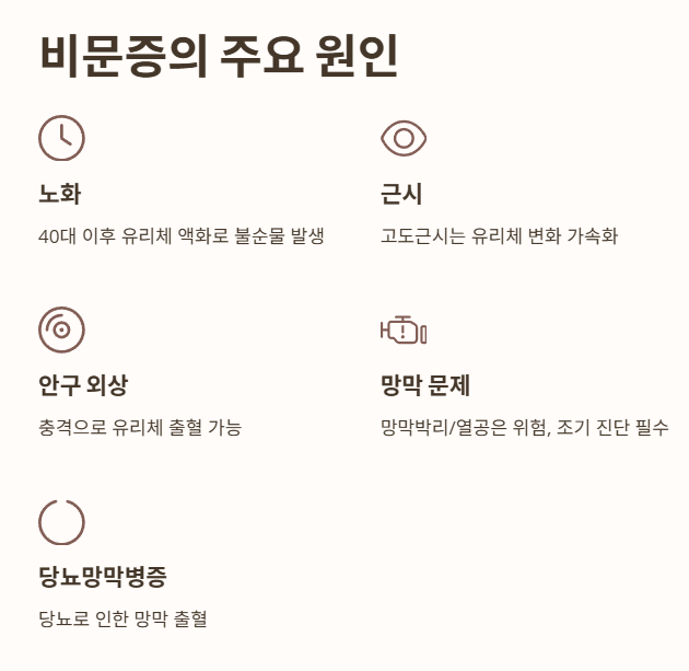 비문증은 대부분 노화로 인한 유리체 변성이 원인이지만, 다양한 요인이 존재합니다.