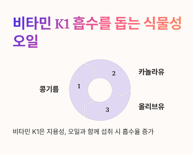 - 비타민 K1이 지용성이라 흡수율이 높습니다.
