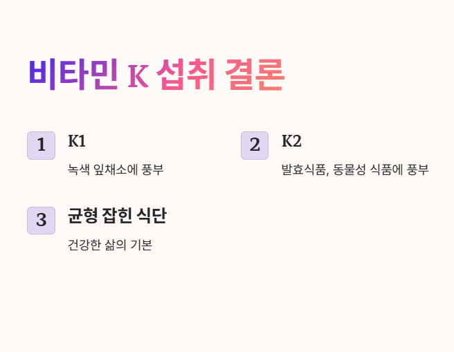 이 글을 통해 비타민 K에 대한 정보를 충분히 이해하고, 일상 식단에 적절히 활용하여 건강한 삶을 유지하시기 바랍니다. 건강한 식습관이 곧 최고의 보약입니다! 😉