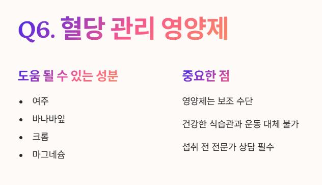 Q6: 혈당 관리를 위해 영양제를 먹는 것이 도움이 될까요?