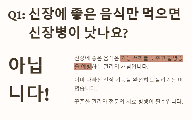 - 이미 나빠진 신장 기능을 완전히 되돌리기는 어렵기 때문에, 꾸준한 관리와 전문의의 치료가 병행되어야 합니다.