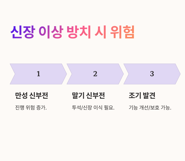 신장 질환을 초기에 발견하지 못하면 만성 신부전으로 진행될 위험이 있습니다.