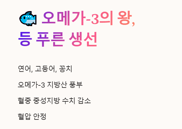 1. 🐟 오메가-3의 왕, 등 푸른 생선