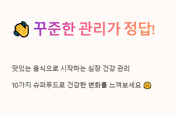 심장 건강 관리는 어려운 숙제가 아니라, 맛있는 음식으로 시작할 수 있는 건강 관리방법이랍니다. 🏃♂️