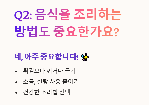 Q2: 음식을 조리하는 방법도 중요한가요?