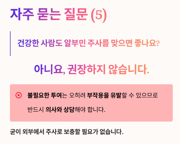 Q5: 건강한 사람도 알부민 주사를 맞으면 좋나요?