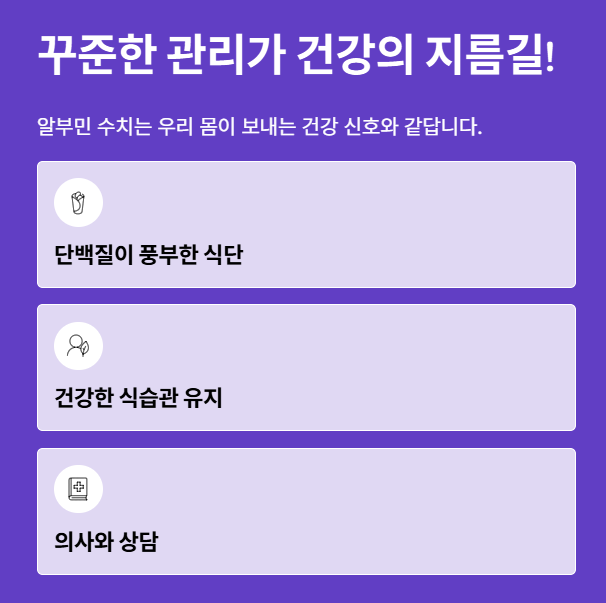 알부민 수치는 우리 몸이 보내는 건강 신호와 같답니다. 🚦