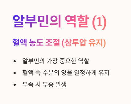 - 알부민의 효능 중 가장 중요한 역할이에요.