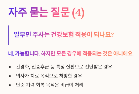 Q4: 알부민 주사는 건강보험 적용이 되나요?