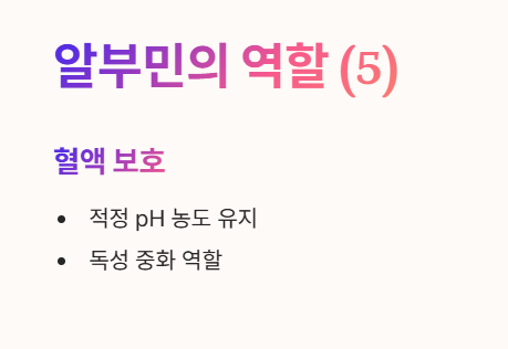 - 또한, 혈액 내 불필요한 물질과 결합하여 독성을 중화시키는 역할도 한답니다.