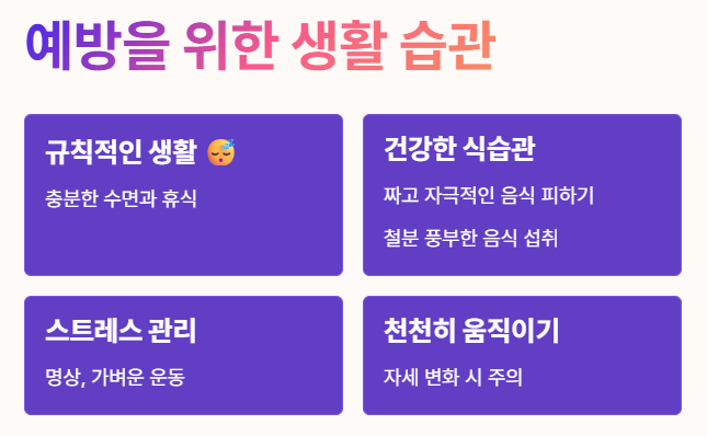 - 규칙적인 생활: 충분한 수면과 휴식은 필수예요. 😴