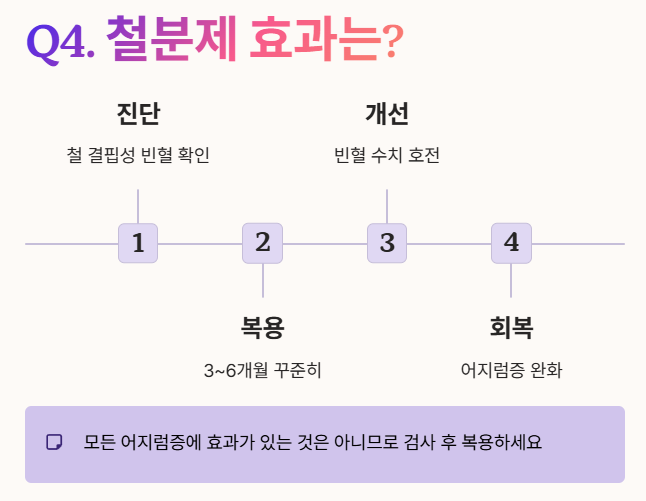 Q4: 빈혈약(철분제)을 먹으면 어지럼증이 바로 좋아지나요?