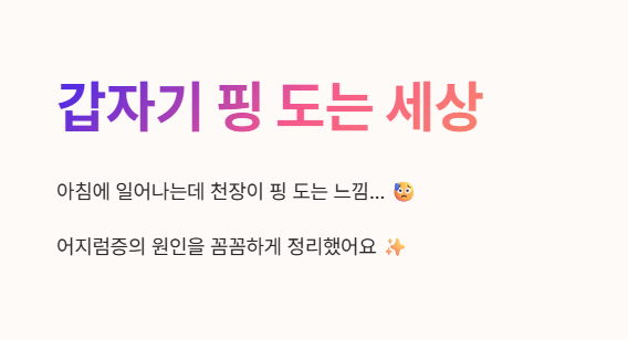 얼마 전 아침에 일어나는데 갑자기 천장이 핑 도는 느낌을 받았어요. 😥