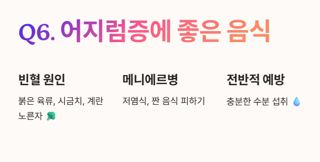Q6: 어지럼증에 좋은 음식이 있을까요?
