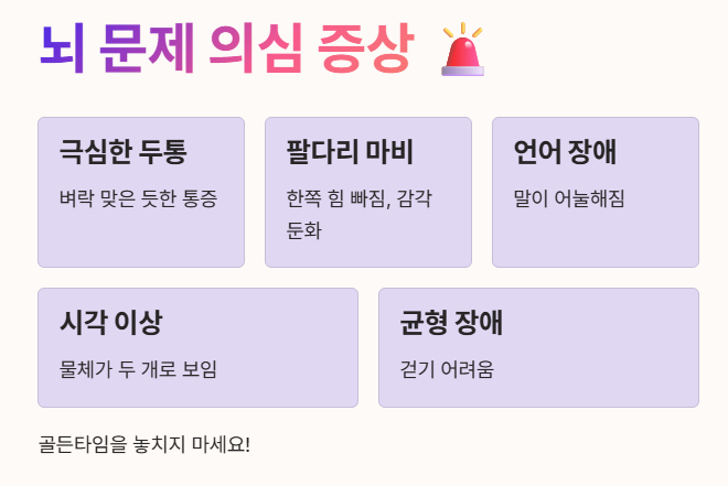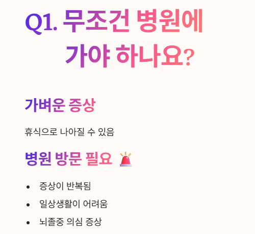 - 특히 앞서 언급된 뇌졸중 의심 증상이 있다면 즉시 응급실로 가야 합니다. 🚨