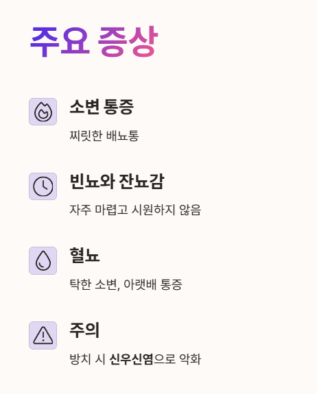 - 소변을 봐도 시원하지 않음 (잔뇨감)