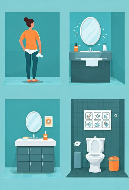 - 화장실 사용 후 앞에서 뒤로 닦기