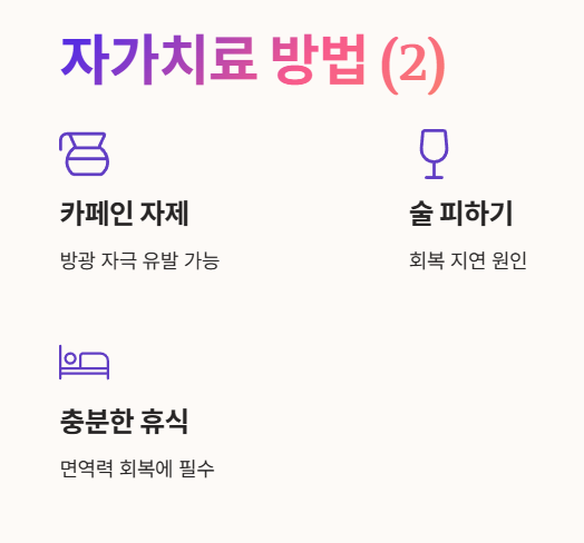 - 면역력을 회복시키고 스트레스를 줄이는 것이 중요해요.