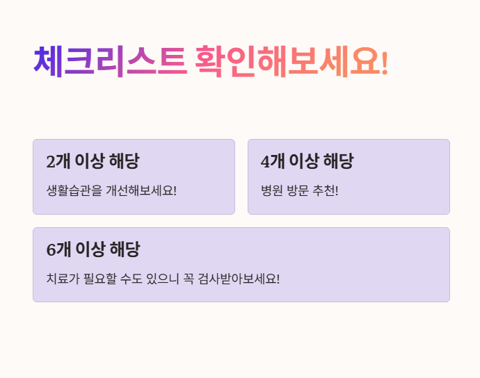 ✅ 4개 이상 해당된다면 → 병원 방문 추천!