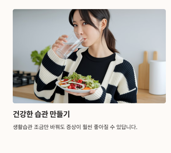 ✅ 위 증상 중 2개 이상 해당된다면 → 생활습관을 개선해보세요!