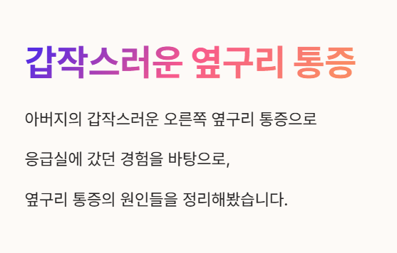 얼마 전 저희 아버지가 갑자기 오른쪽 옆구리가 너무 아프다고 하셔서 온 가족이 깜짝 놀랐어요. 😥