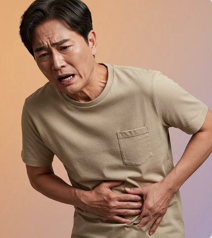 - 오른쪽 윗배나 옆구리에 답답하고 묵직한 느낌이 들어요.