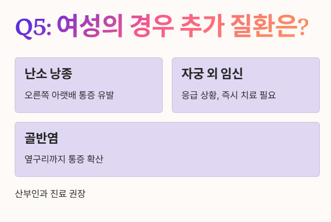 Q5: 여성의 경우 어떤 질환을 추가로 의심할 수 있나요?