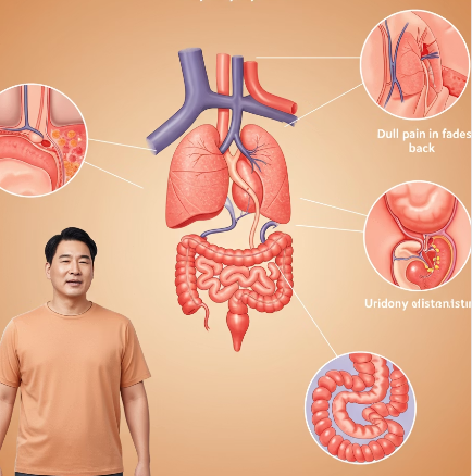 - 옆구리나 허리에 둔하고 묵직한 통증이 느껴져요.